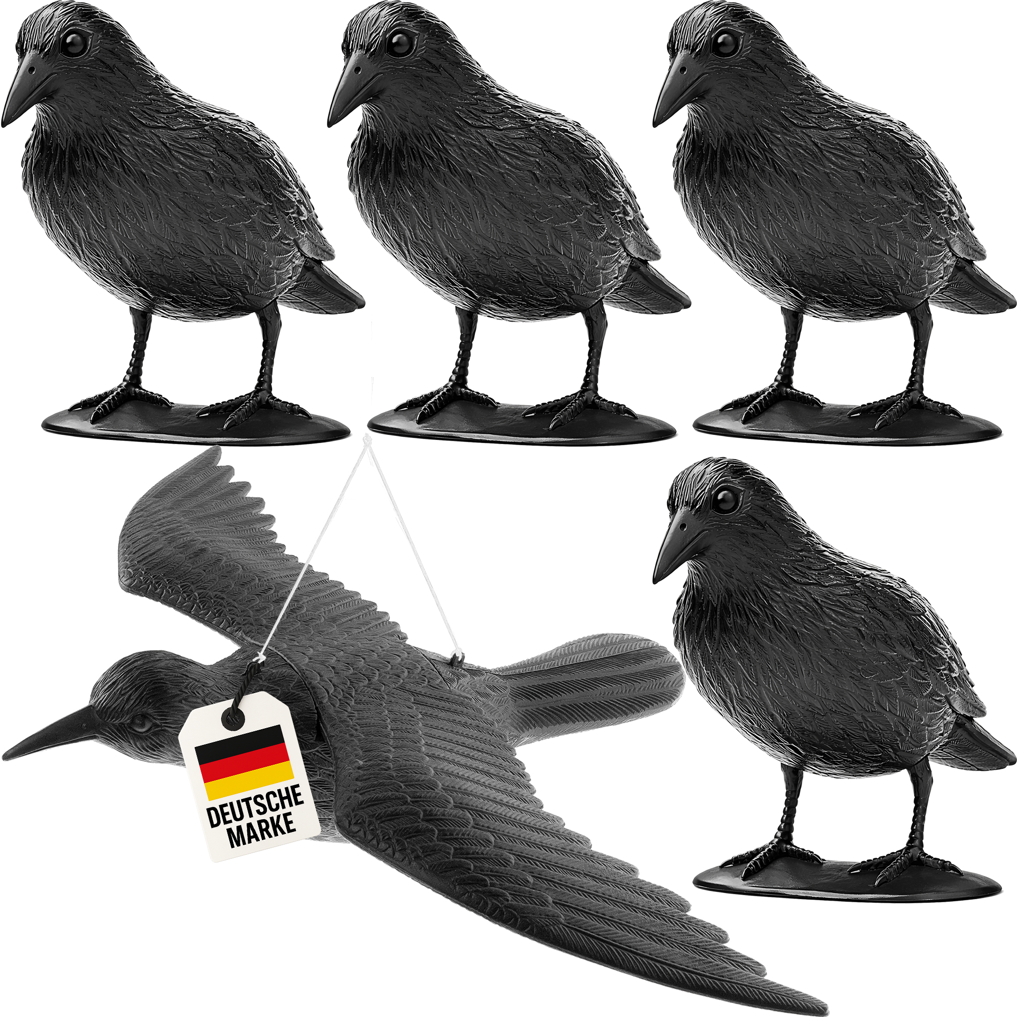5x Vogelschreck Krähe – effektive Vogelabwehr für Balkon, Garten & Terrasse 1x fliegend 4x sitzend
