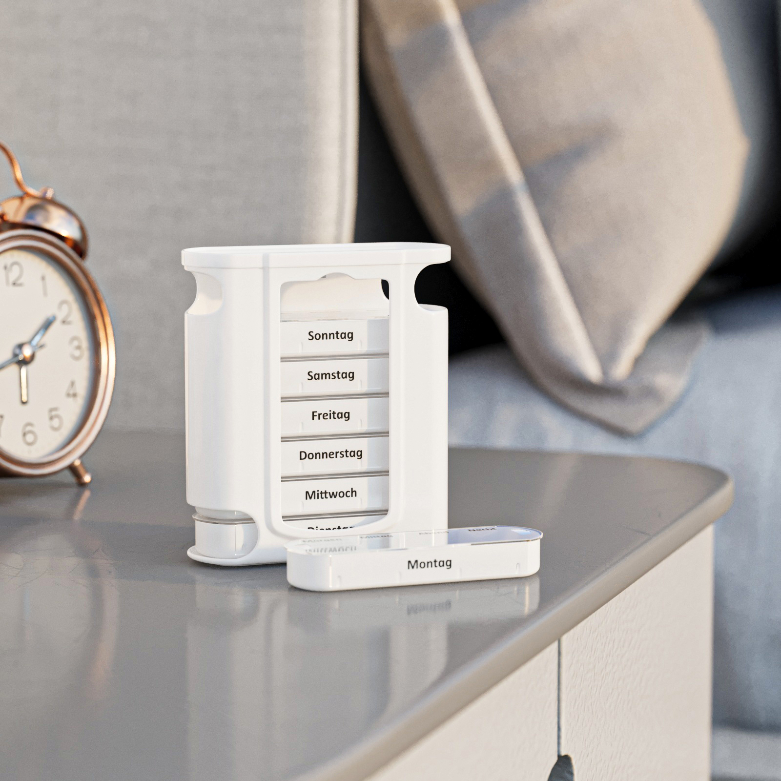 - Flexibilität: Herausnehmbare Tagesfächer, ideal für unterwegs.