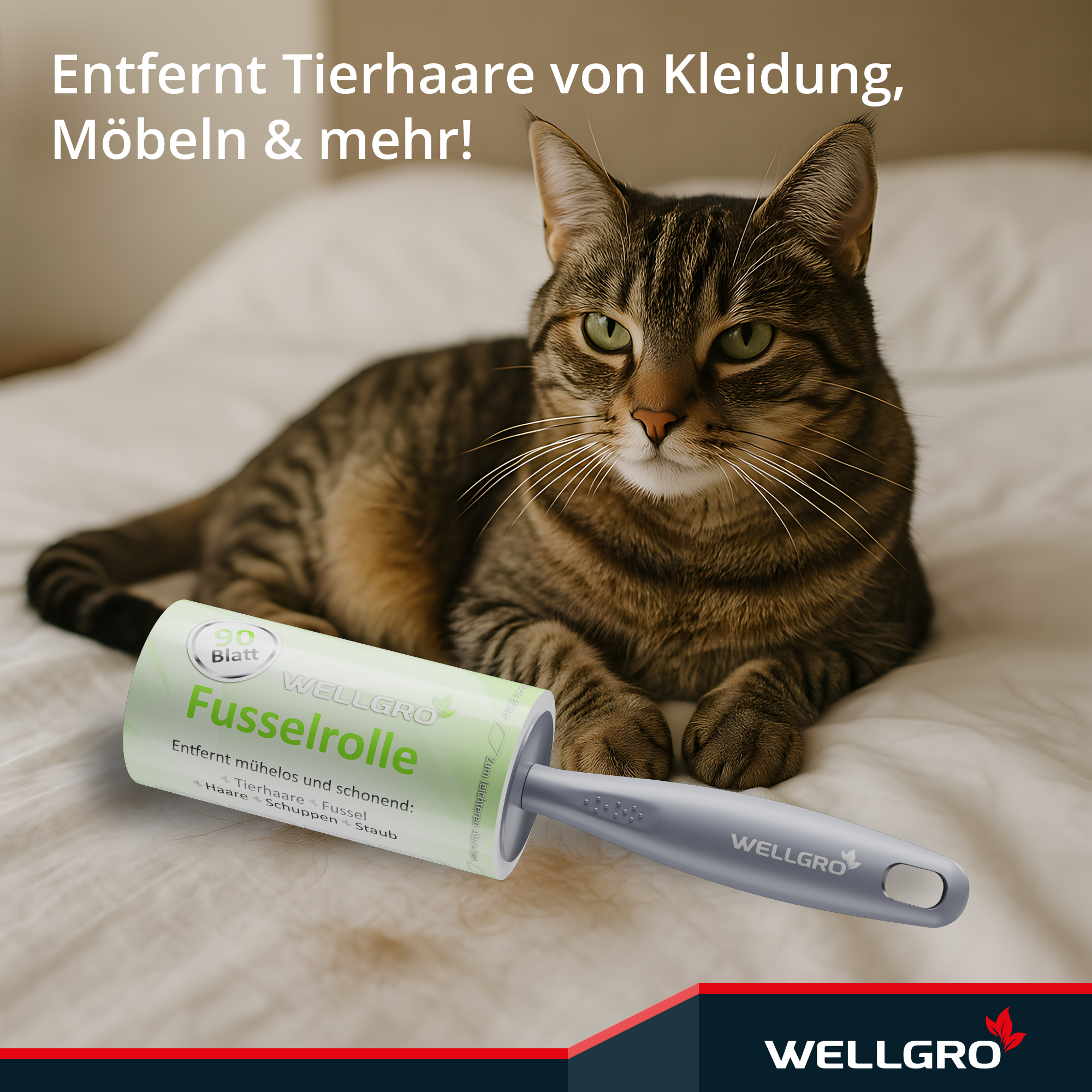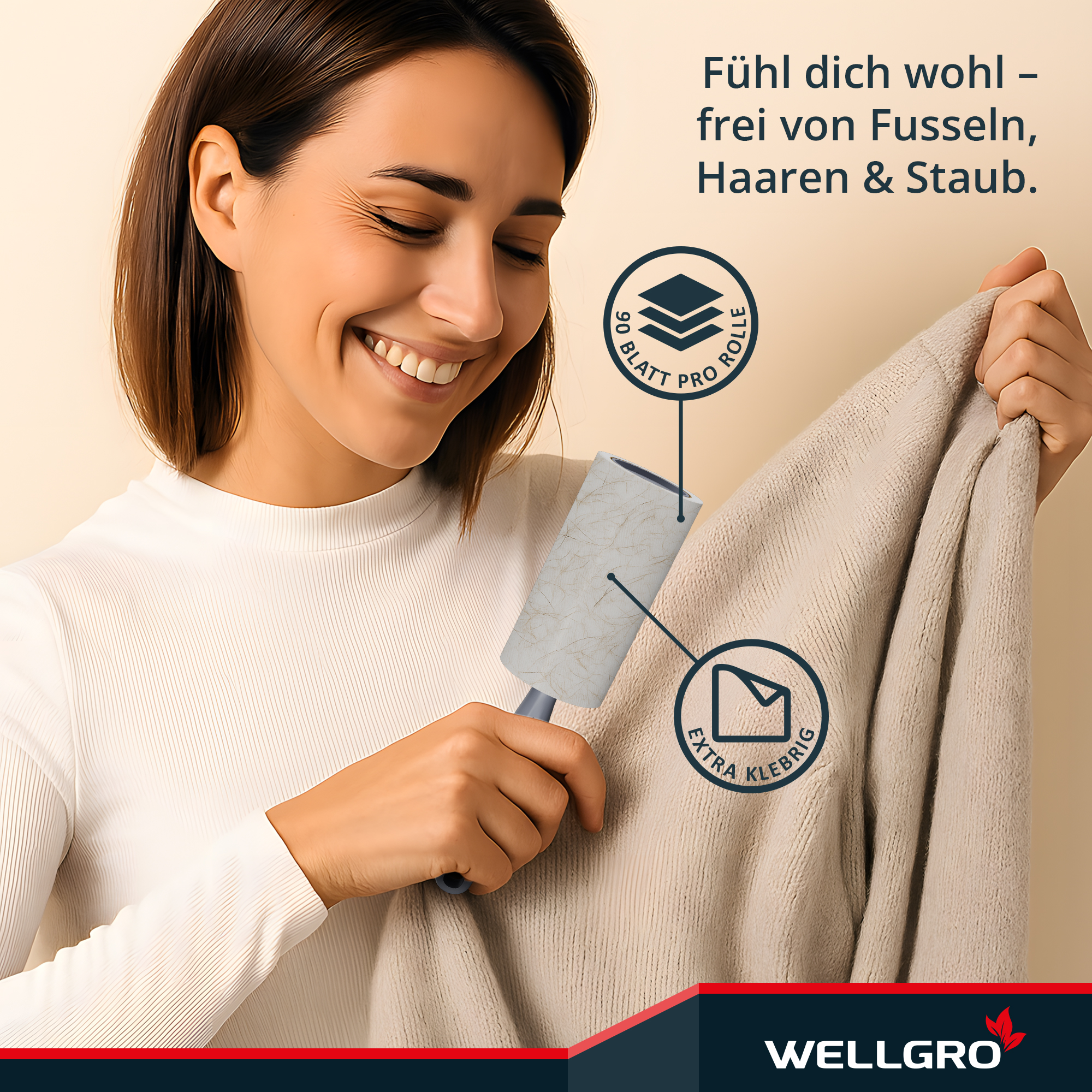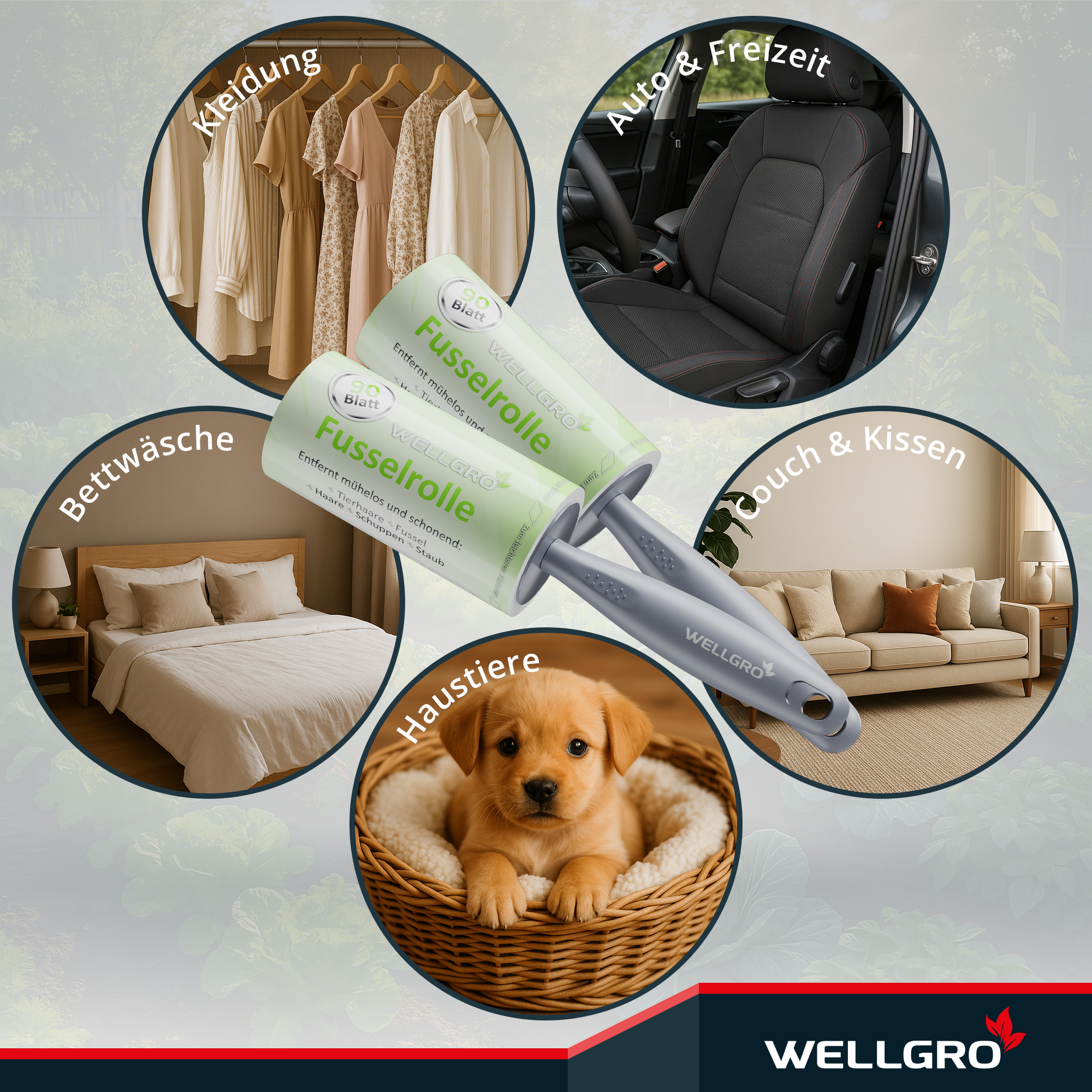 WELLGRO Fusselroller Set – für saubere Kleidung, Möbel und ein haarfreies Zuhause