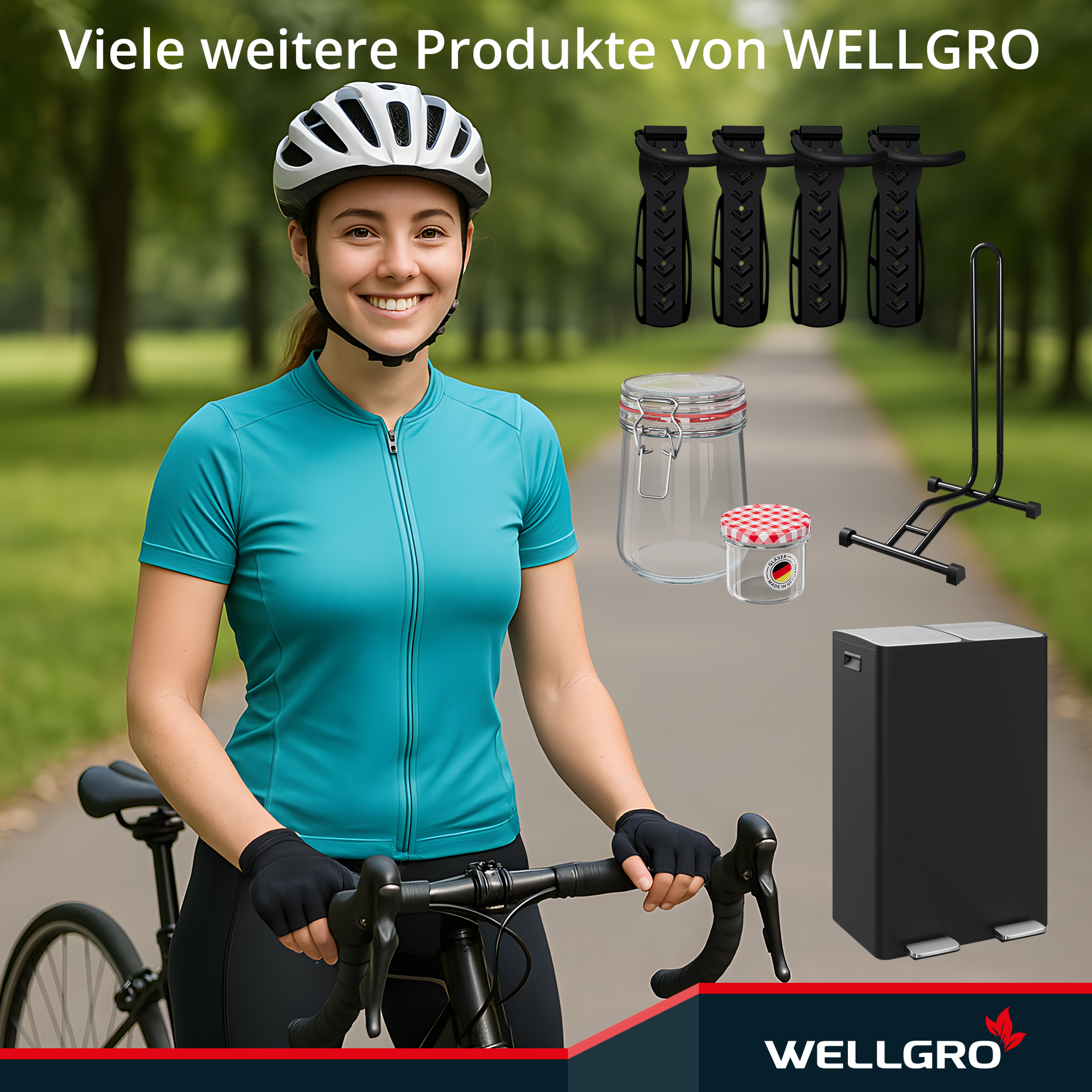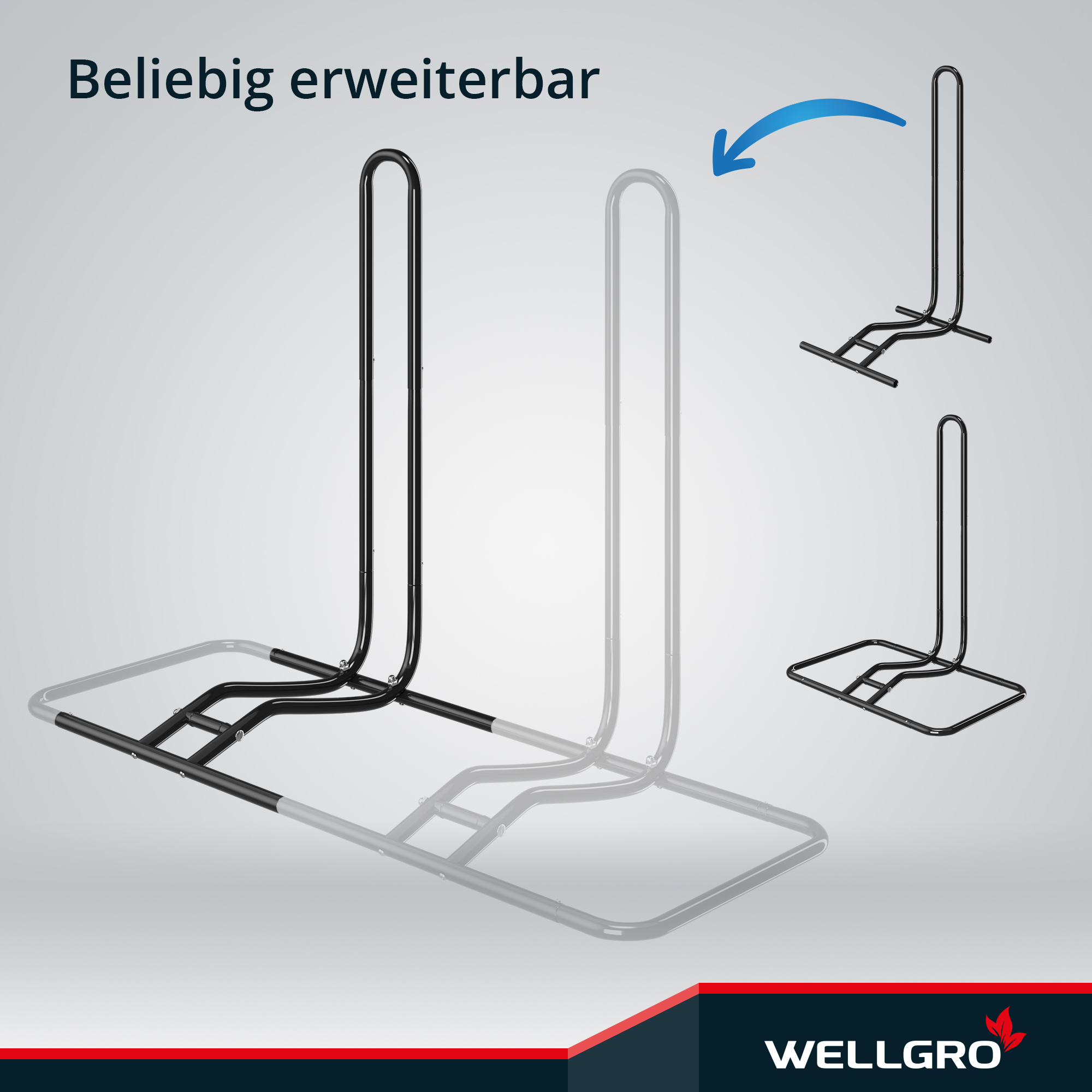 WELLGRO Fahrradständer Boden erweiterbar – Universal Fahrrad Ständer für Mountainbike, Rennrad & Fatbike – Robuster Radständer aus Stahl für Garage, Keller & Außenbereich – Schwarz