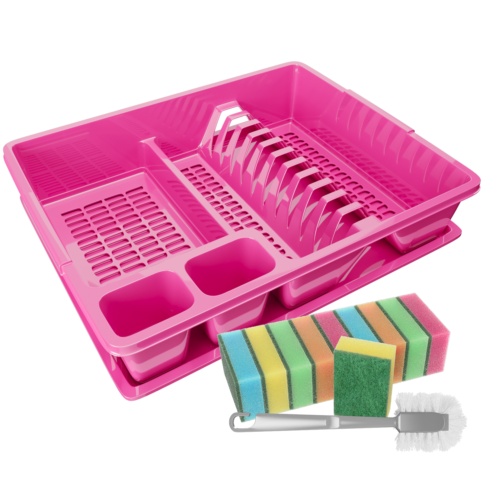 Lieferumfang: 1 Abtropfgestell mit Abtropfschale + Reinigungsbürste + 10 Schwämme (ohne Dekoration, Farbe im Drop-Down wählbar)